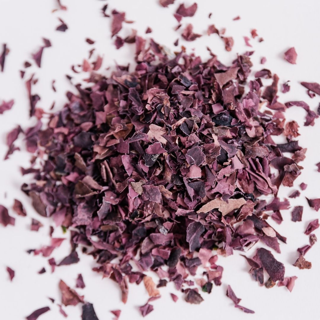 Découvrez le pouvoir des algues bretonnes avec notre Dulse à saupoudrer, une algue rouge au goût naturellement fumé, riche en protéines, iode, et source de fer.